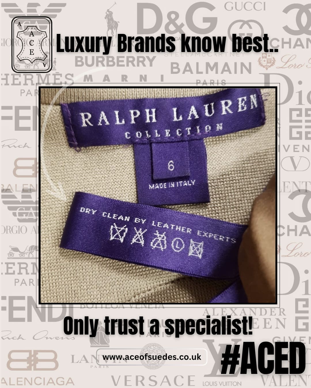 Ace of Suedes are exclusively recommended by 1000’s of dry cleaners, retails, designers and private clients across the country.